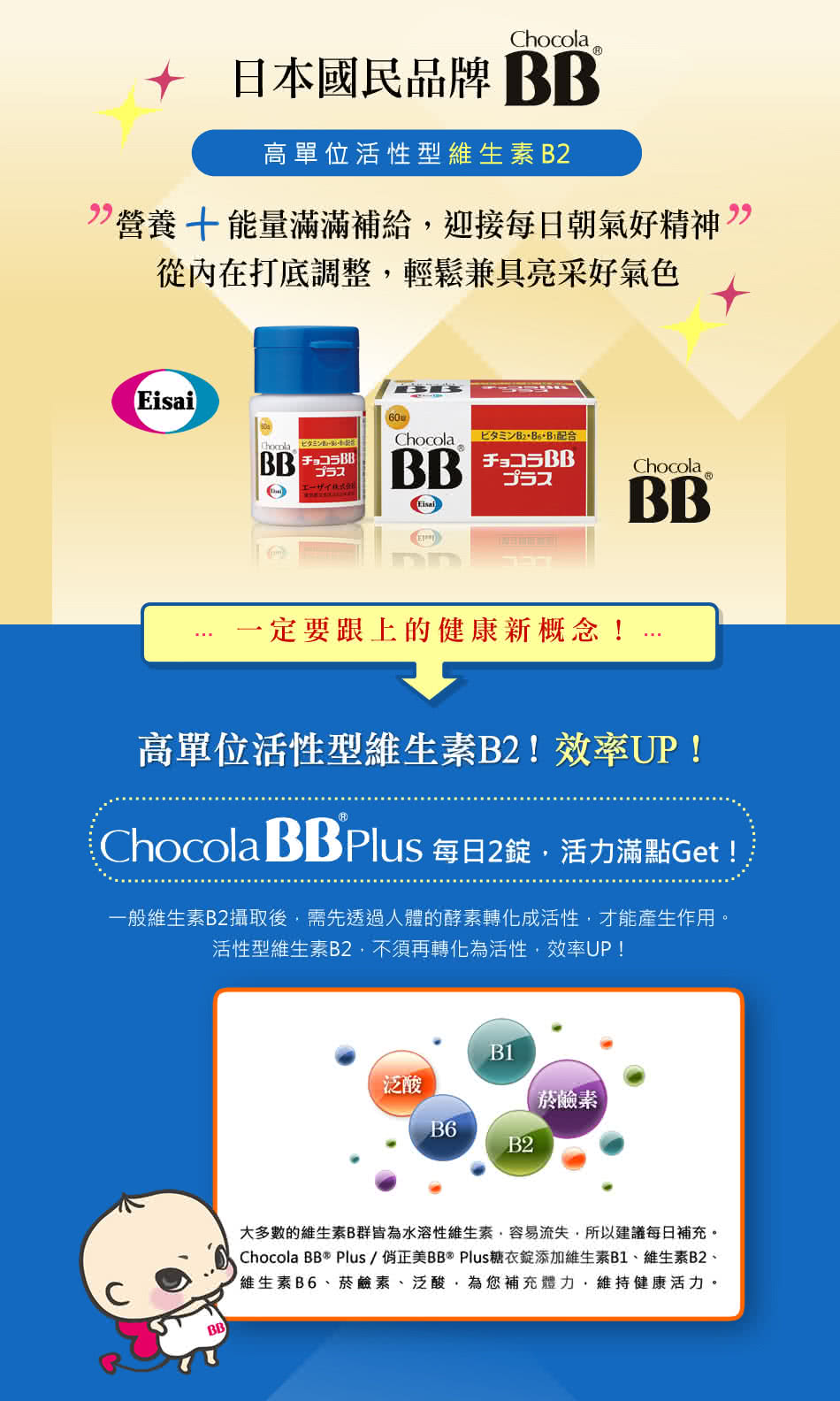 【Eisai 衛采】Chocola BB Plus 60錠×1瓶+180錠×1瓶(曾之喬代言 高單位活性化B群 提升肌膚代謝力)大家可以參考看看